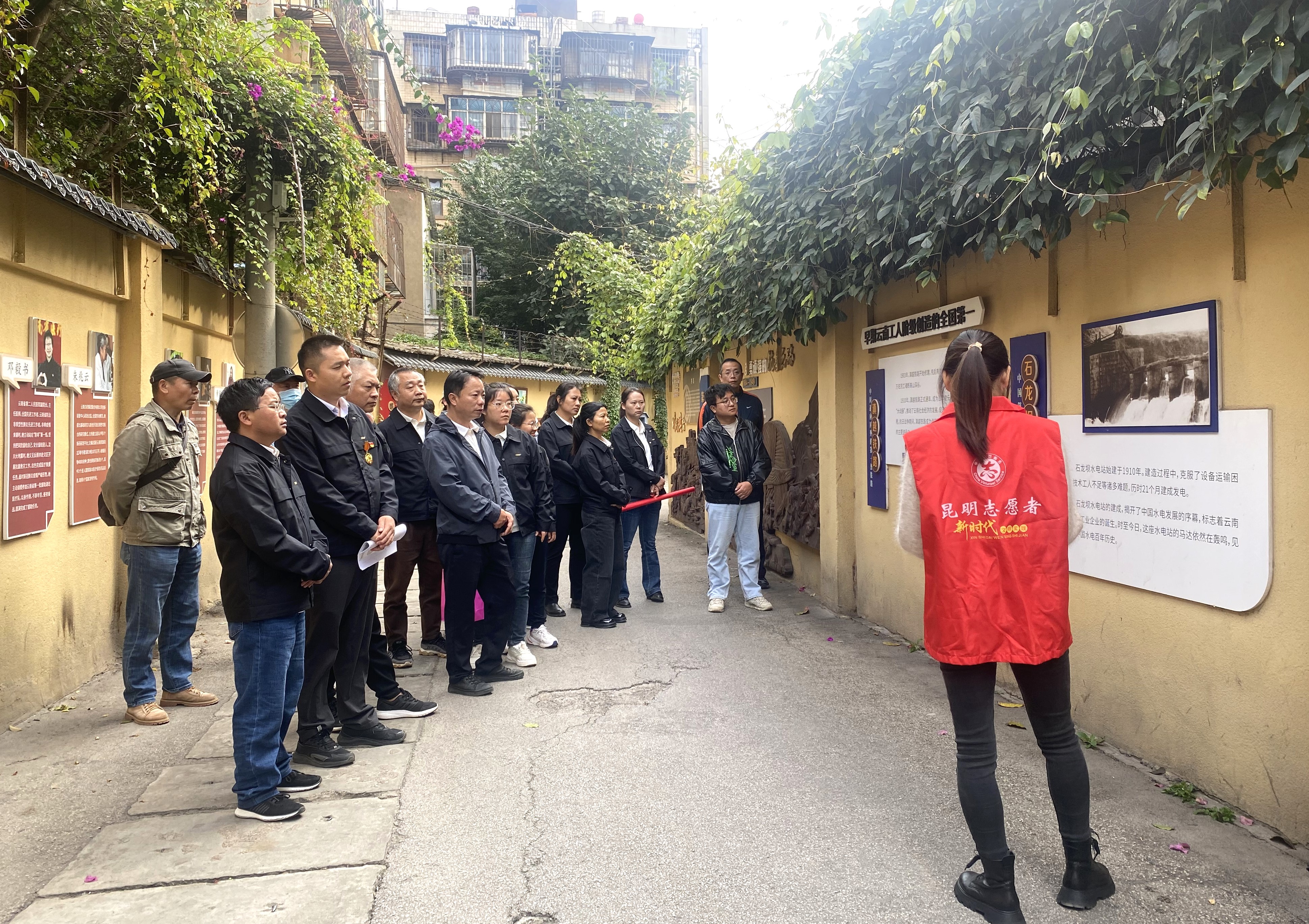 20余名黨員共同參觀五華區篆西巷工人文化長廊,在新聞里社區講解員的引導下,大家通過浮雕、圖文展板、歌詞墻等內容,詳細了解相關歷史,回望云南省工人階級英勇頑強的抗爭之路、探索前進的建設之路、改革開放的發展之路、昂揚奮進的騰飛之路,領略云南工人階級的政治本色、價值取向、光榮傳統和奮斗風采。
