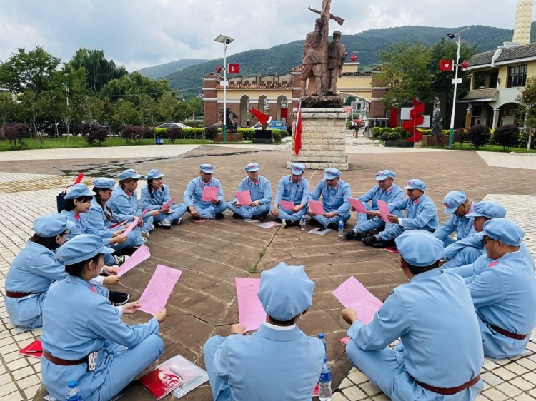全體黨員換上紅軍服、戴上紅軍帽、打好綁腿,分成兩列縱隊,邊齊步走邊高唱紅歌,重走長征路。“短短2公里,讓我體會到紅軍當年充滿理想、用意志和勇氣譜寫的長征精神。”