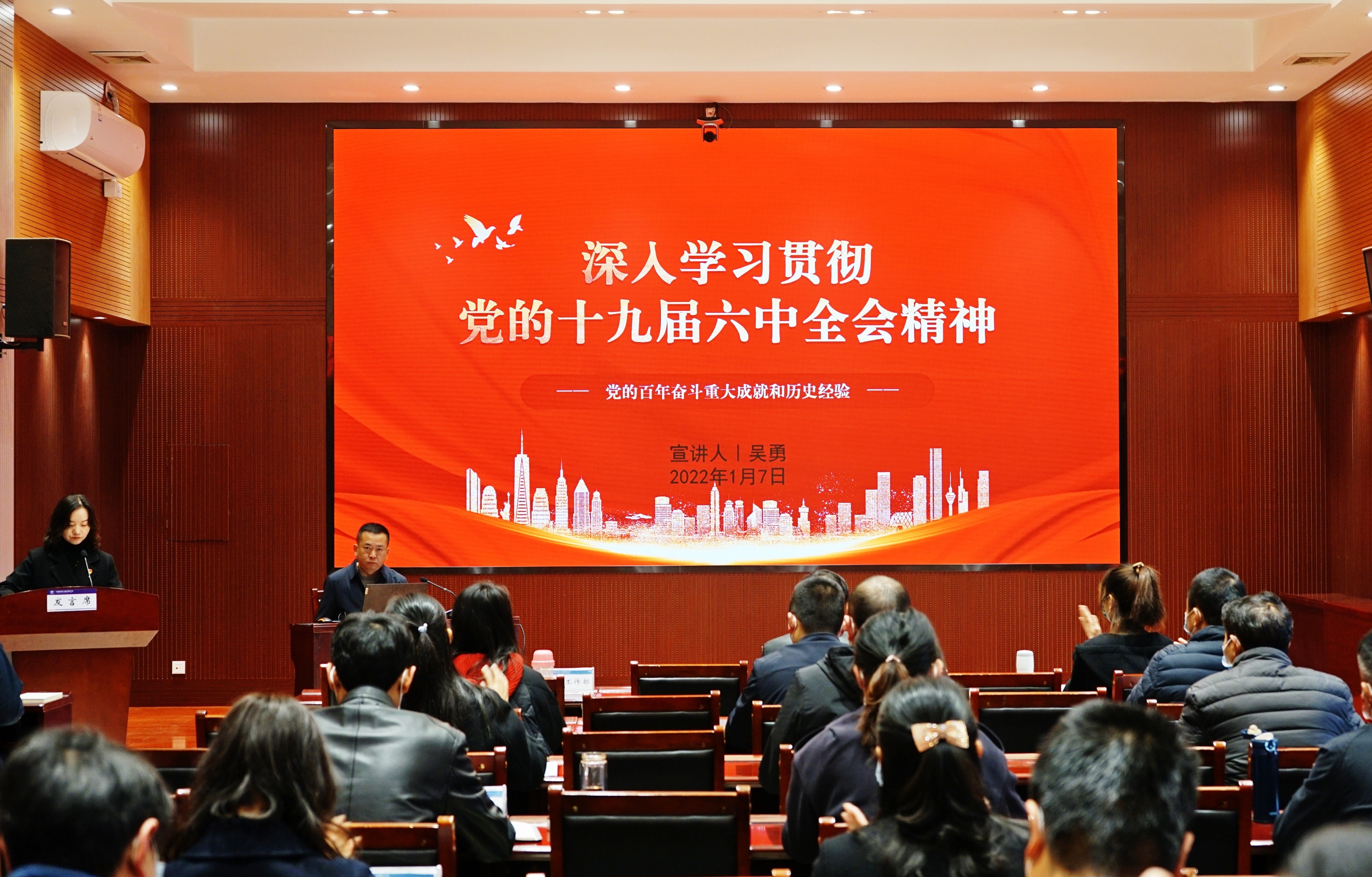 公司領導宣講吳勇宣講1月7日上午,公司黨委書記、董事長吳勇在一號會議室開展黨的十九屆六中全會及省第十一次黨代會精神宣講。公司相關部門負責人、各基層單位黨支部書記、副書記、經理參加會議。▲宣講會現場吳勇圍繞要深刻認識總結黨的百年奮斗重大成就和歷史經驗的重大意義;深刻認識黨的百年奮斗的初心使命和重大成就;深刻認識中國特色社...
