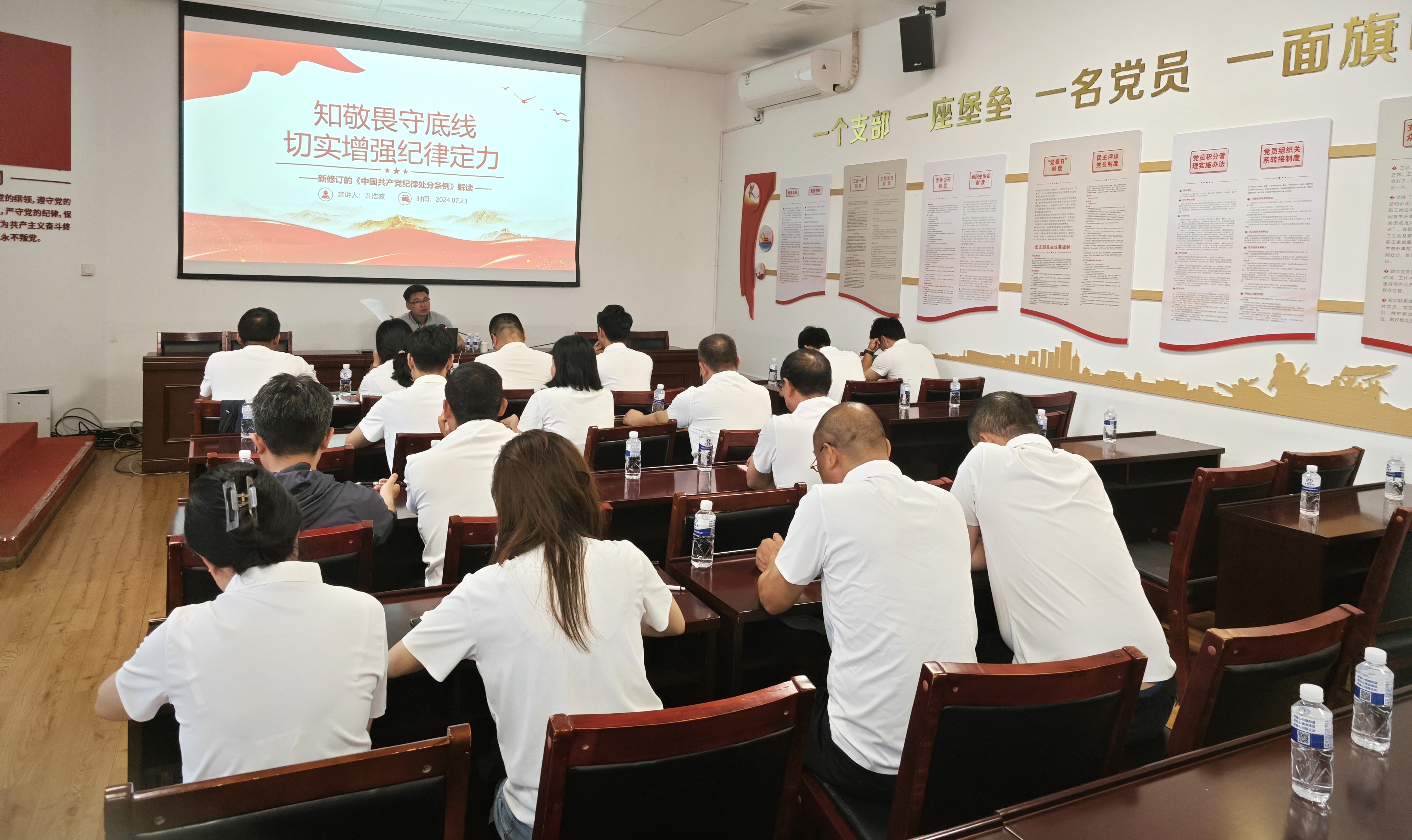 7月23日上午,公司副總經理、總經濟師許浩波以《知敬畏守底線切實增強紀律定力》為題,為資產運營管理部全體黨員干部職工共計30余人講授黨紀學習教育專題黨課。許浩波從充分認識《中國共產黨紀律處分條例》(以下簡稱《條例》)修訂的重大意義,深入領會《條例》修訂的精髓和要義,嚴格落實《條例》形成遵規守紀高度自覺三個方面,結合黨的...