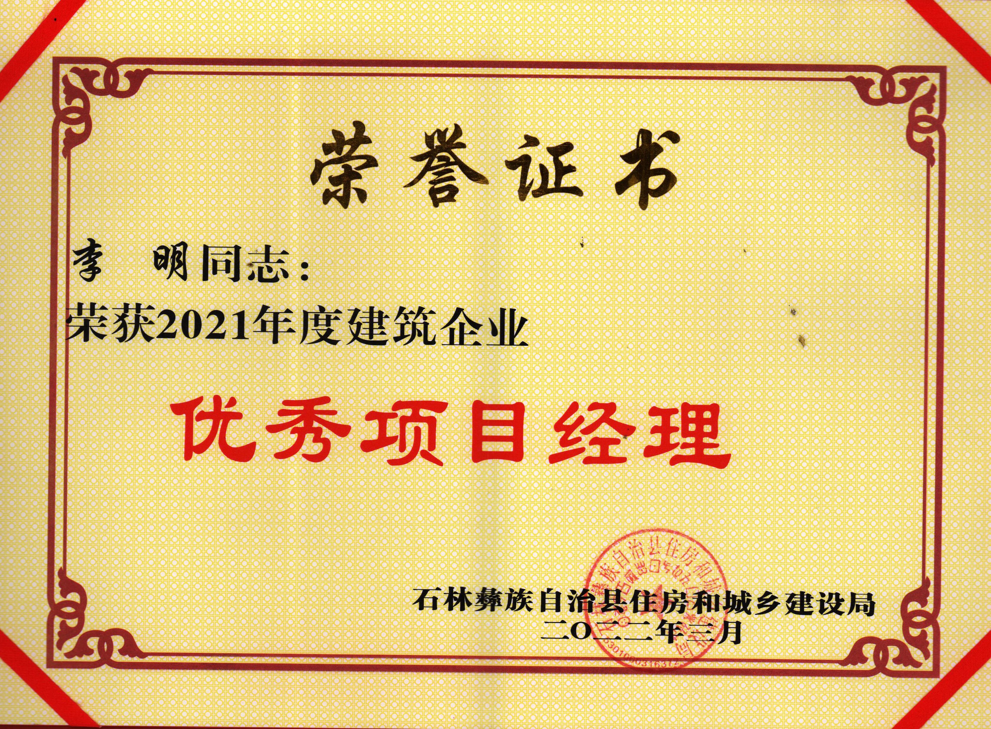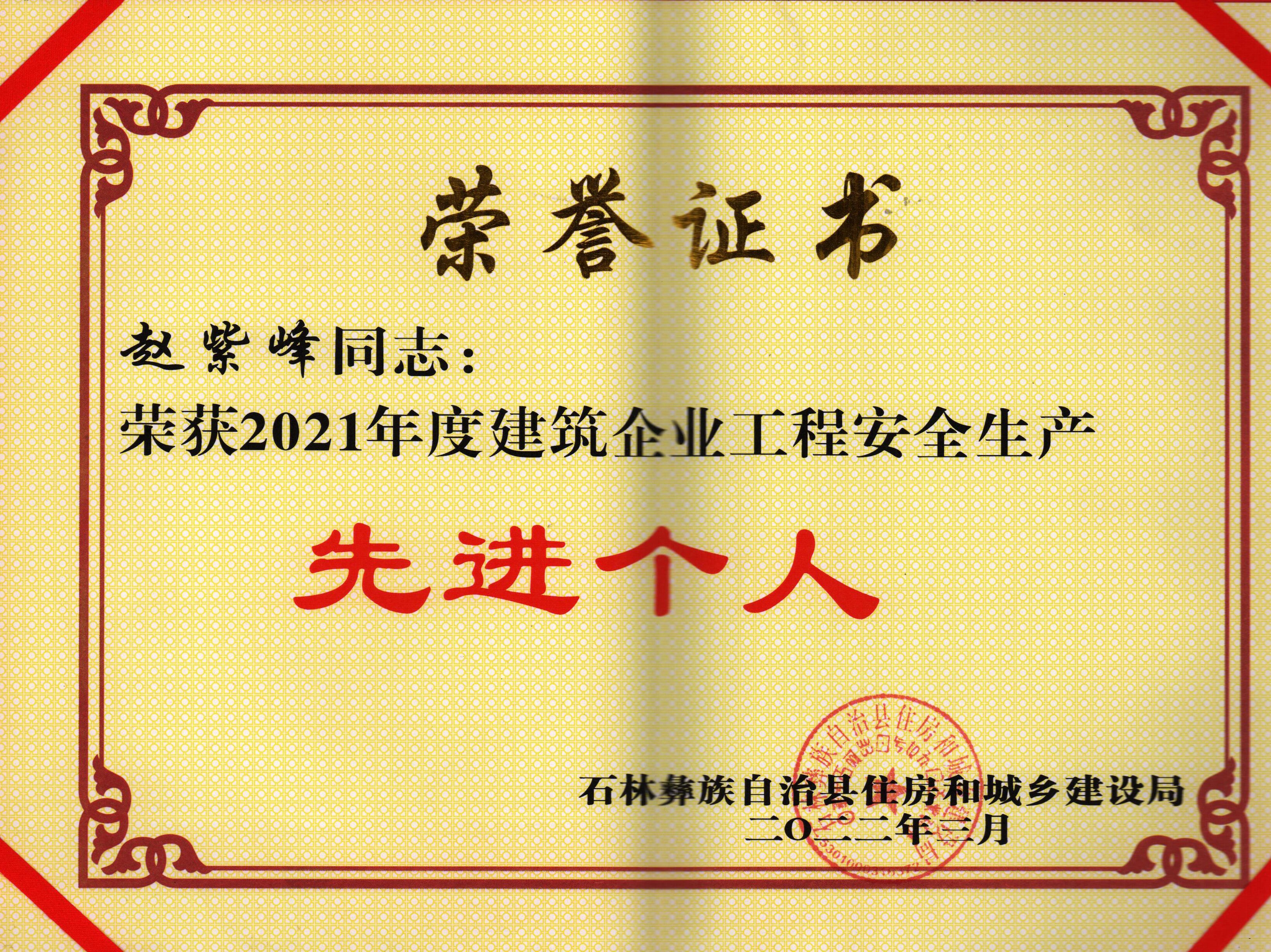 會上,萬勇通報表彰石林縣建筑施工領域2021年度安全生產文明施工和揚塵防控優(yōu)秀單位及優(yōu)秀先進個人。其中由第三項目經理部承建的西南林業(yè)大學石林職業(yè)技術學院基礎設施建設項目(第二標段)榮獲2021年建筑工程疫情防控、工程質量、安全生產、文明施工、揚塵治理先進單位,鄧仕貴榮獲2021年度昆明市建筑企業(yè)優(yōu)秀項目經理,李明榮獲2021年度建筑企業(yè)優(yōu)秀項目經理,蘇俊旭和趙紫峰榮獲2021年度建筑企業(yè)工程安全生產先進個人獎。