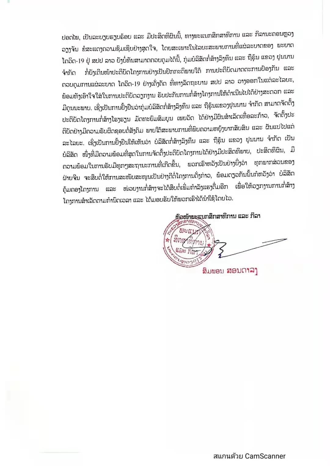 老撾萬象市教育與體育廳發往云南國際經濟技術交流中心的表揚信稱,項目自開工建設以來,特別是老撾出現新冠肺炎疫情后,項目生產面臨巨大挑戰。建投集團和三公司科學應對、迅速反應,將國內疫情防控的成功經驗與老撾當地實際相結合,確保了各項目的順利施工,得到了萬象市政府、老中合作委員會、萬象市教育與體育局領導的認可,對此老方感到非常滿意!