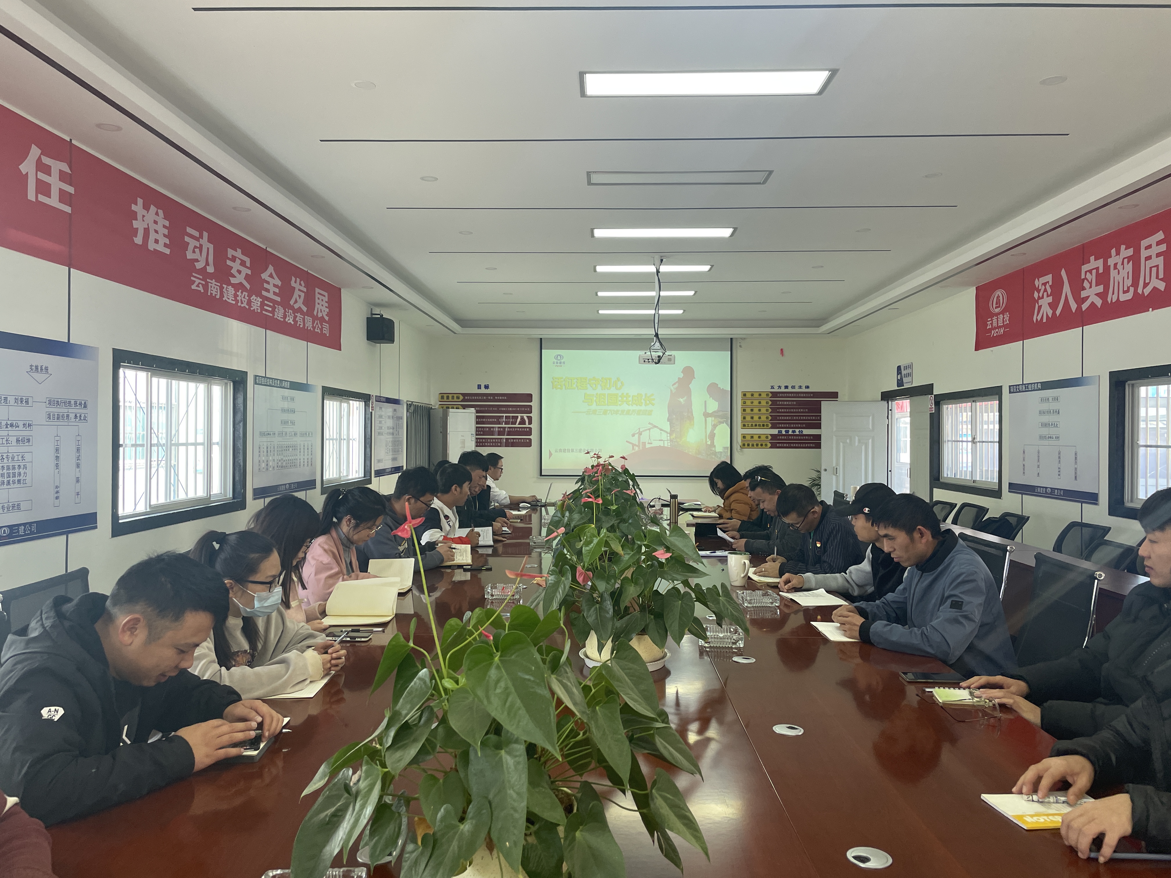 12月15日,第二項目經(jīng)理部以現(xiàn)場會議+直播課程的形式組織“云南三建70年發(fā)展歷程”的學(xué)習(xí),共57人參與學(xué)習(xí)。