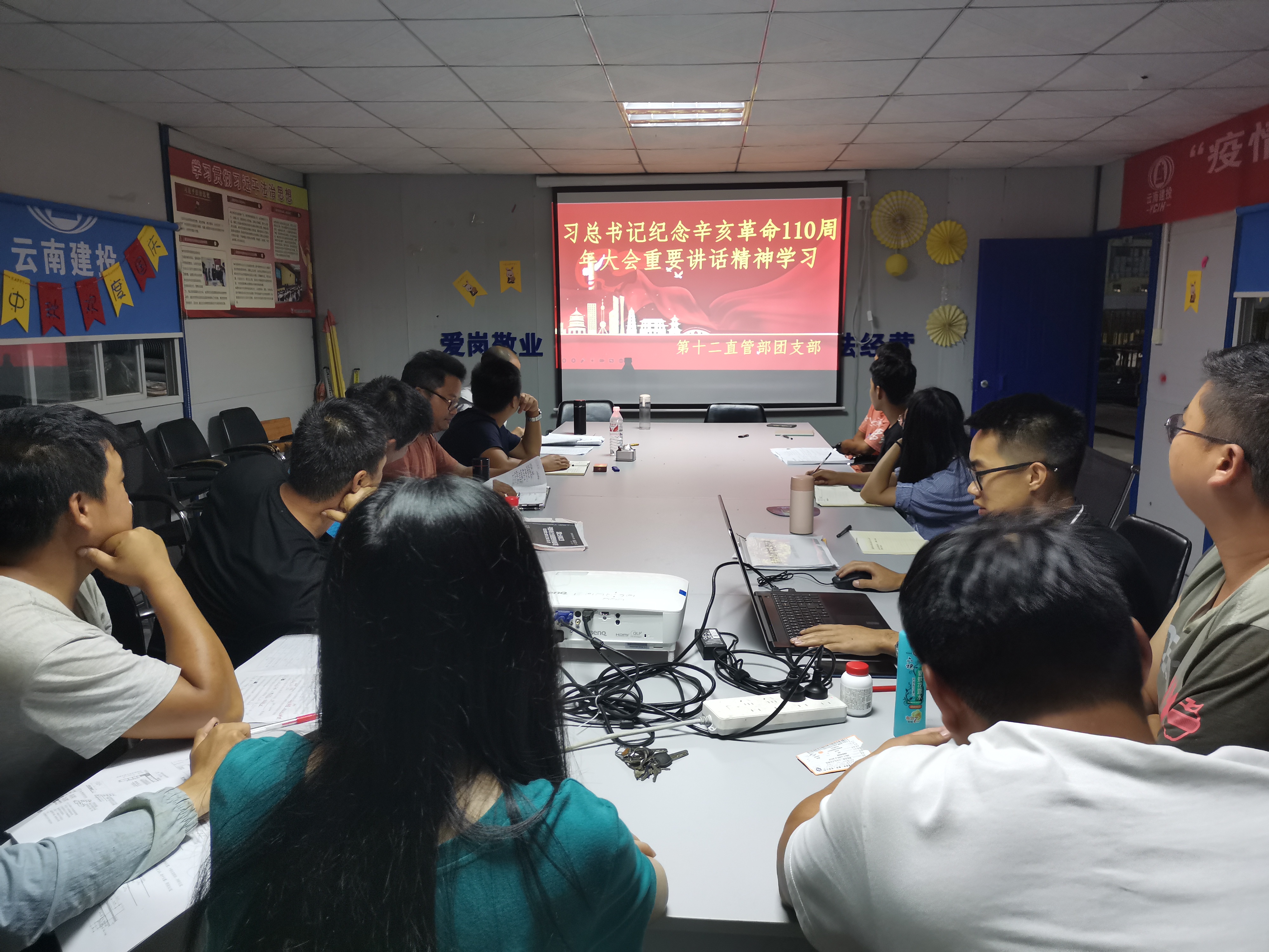 第十二直管部團支部在賽佰新天地項目觀看了習近平總書記紀念辛亥革命110周年大會上的重要講話視頻,并學習了辛亥革命的背景、過程、結束及影響,讓團員青年們再次認識辛亥革命的偉大歷史意義與時代價值。
