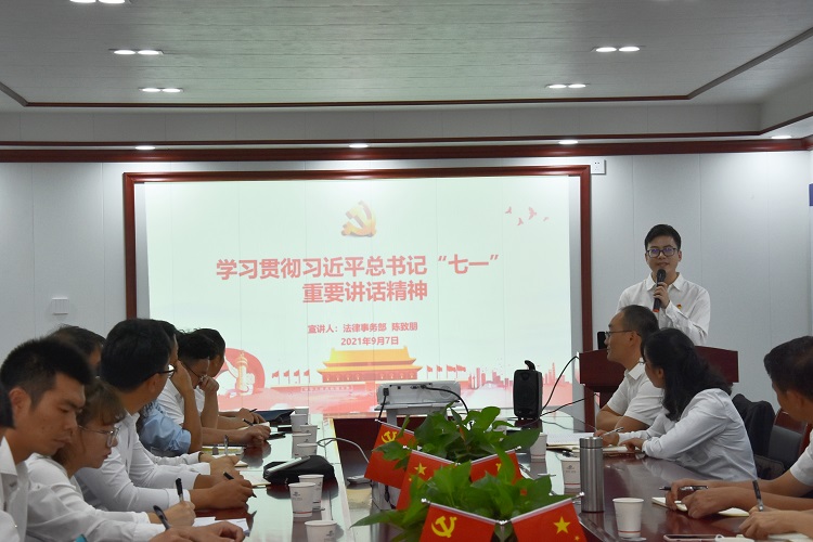 侯騫結(jié)合習(xí)近平總書記在建黨100周年大會上的重要講話精神,圍繞“鑄就百年輝煌,書寫千秋偉業(yè)”、“實現(xiàn)中華民族偉大復(fù)興取得的四個偉大成就”、“以史為鑒,開創(chuàng)未來,要做到九個必須”三個方面,為大家全面解讀了習(xí)近平總書記“七一”重要講話精神。號召大家牢記初心使命,堅定理想信念,切實把思想和行動統(tǒng)一到習(xí)近平總書記重要講話精神上來,以昂揚姿態(tài)奮力推進(jìn)公司高質(zhì)量發(fā)展。