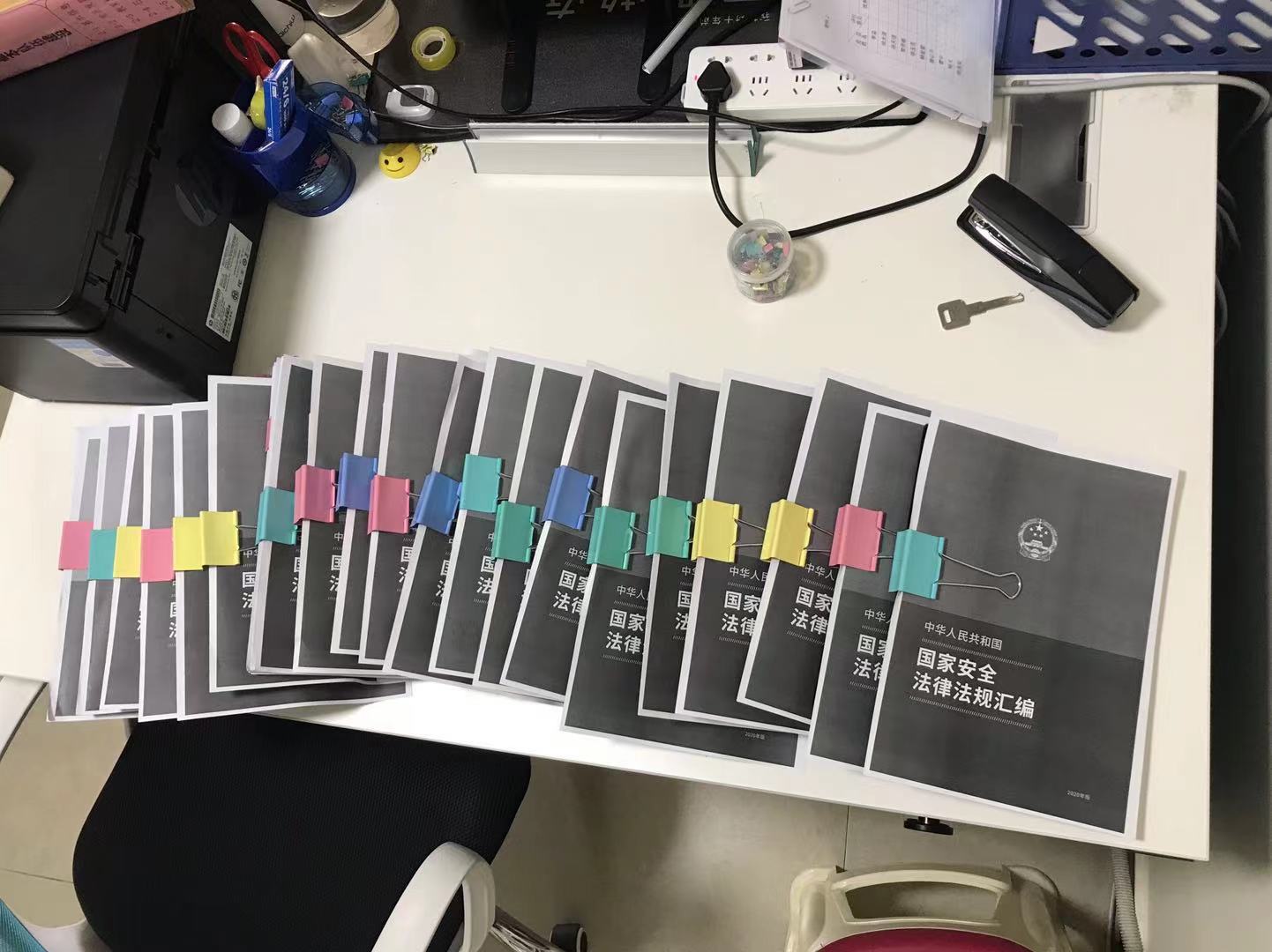 活動中,公司機關、一線項目現場、辦公區域粘貼海報橫幅92幅。18家直管部一線項目管理人員通過PPT、視頻、工作群等形式對國家安全相關法律法規、《傳染病防治法》《突發事件應對法》等疫情常態化防控法律法規、《民法典》等進行學習宣傳。此外,安裝分公司、第三直管部、第八直管部還分別向員工發放《民法典》、《國家安全法》等冊子。