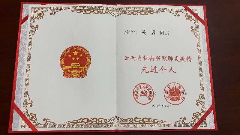 12月28日,云南省抗擊新冠肺炎疫情表彰大會在昆明市海埂會堂隆重召開,表彰了在抗疫中涌現出的先進集體、先進個人和優秀共產黨員。三公司黨委書記、董事長吳勇榮獲“云南省抗擊新冠肺炎疫情先進個人”榮譽稱號。