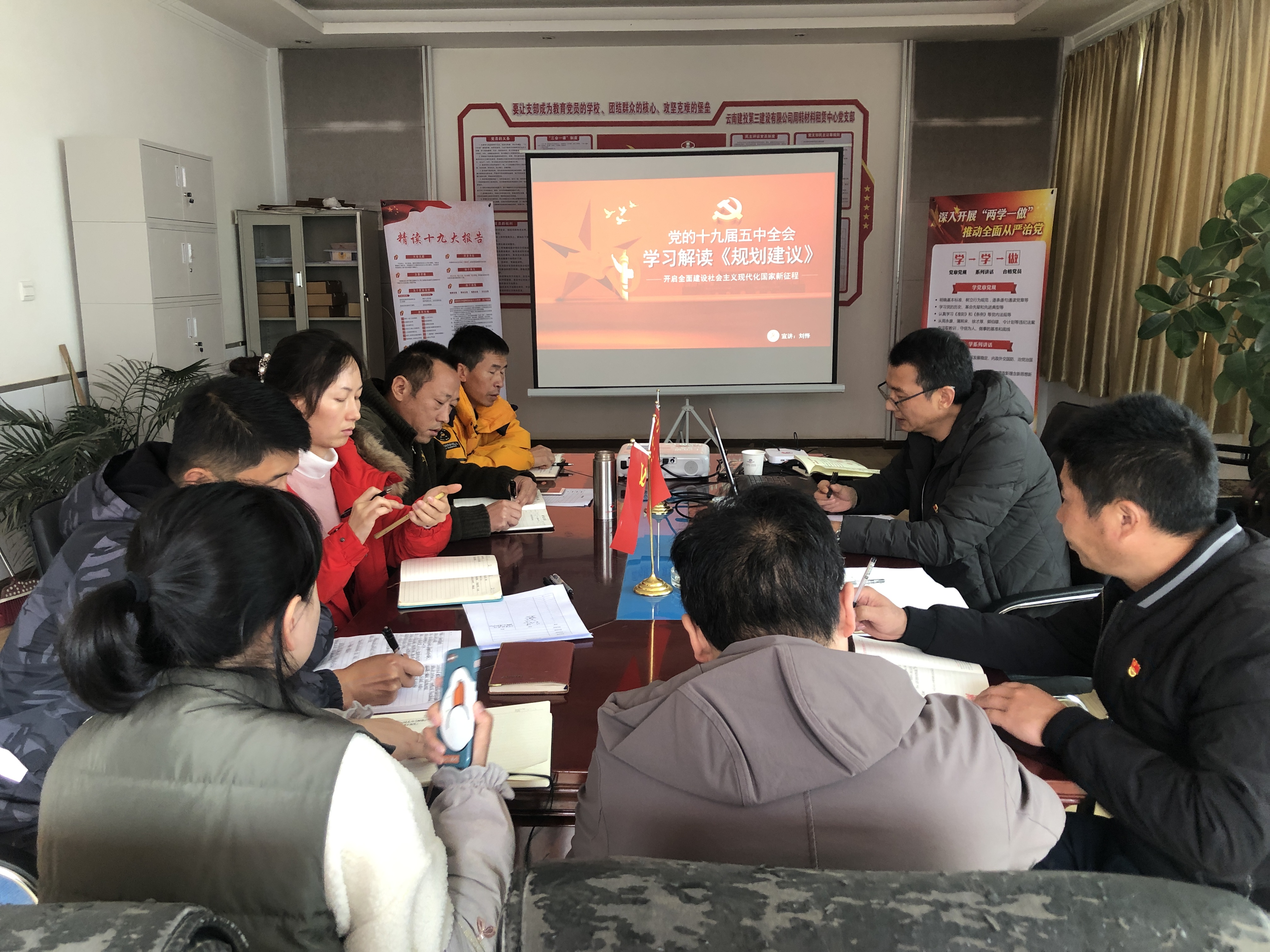 12月3日下午,公司總經濟師劉懌以“解讀黨的十九屆五中全會《規劃建議》”為主題對黨的十九屆五中全會精神進行宣講,活動在周轉料租賃中心會議室進行,周轉材料租賃中心在昆干部職工參會學習。