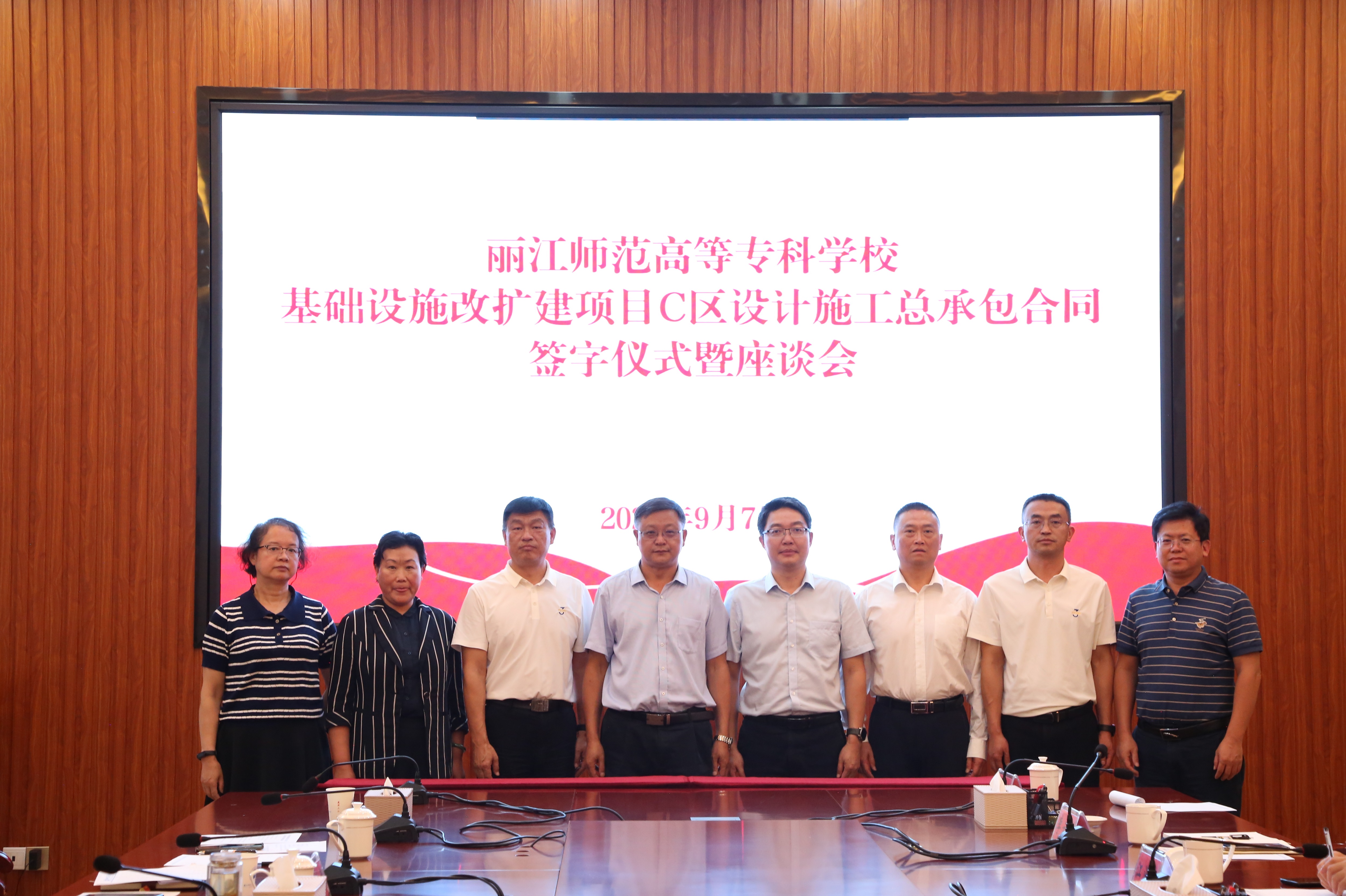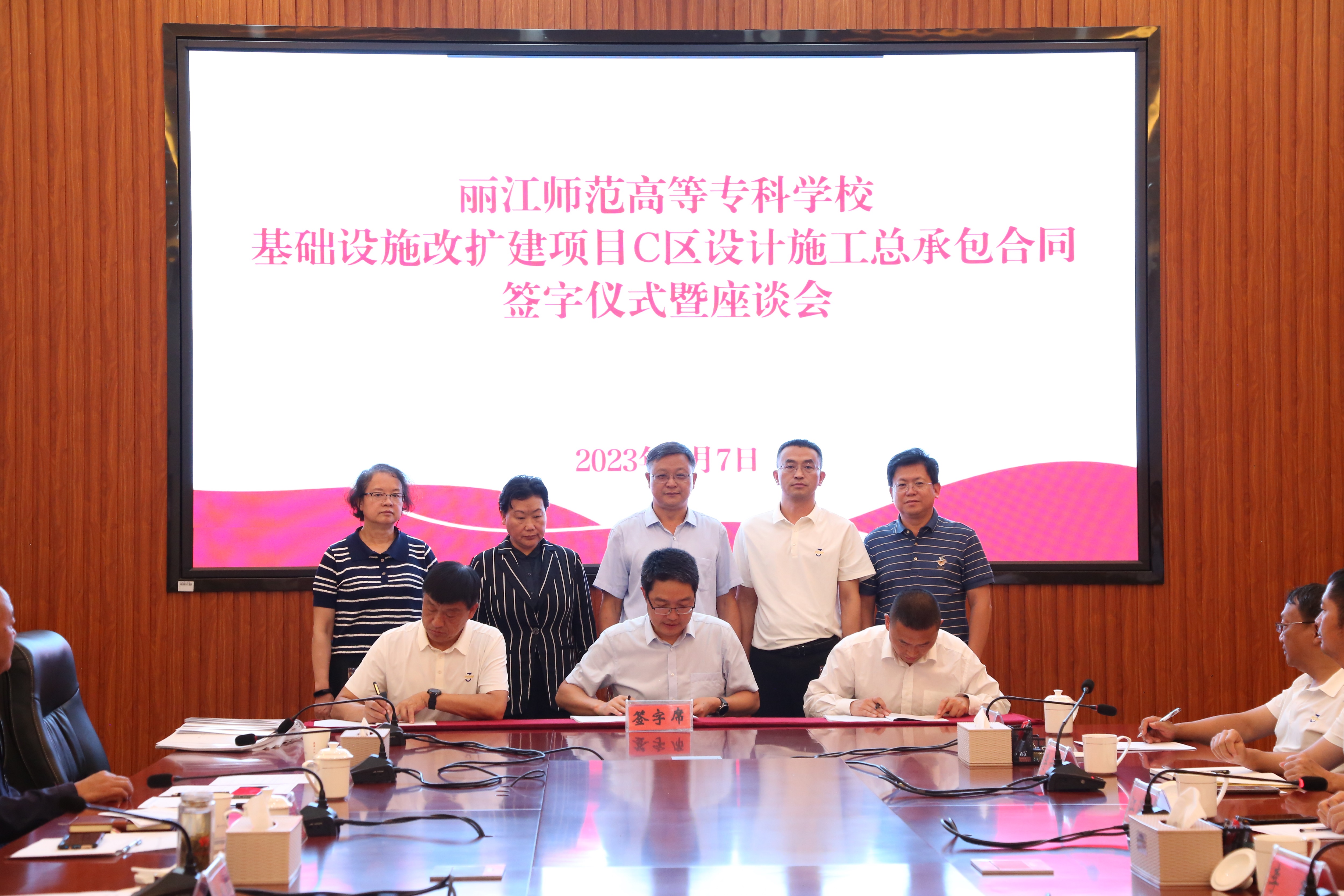 9月7日下午,公司黨委書記、董事長彭云,黨委副書記、總經(jīng)理李騫,財務(wù)總監(jiān)姜海濤到麗江師范高等專科學(xué)校參加C區(qū)設(shè)計施工總承包項目合同簽字儀式暨座談會。