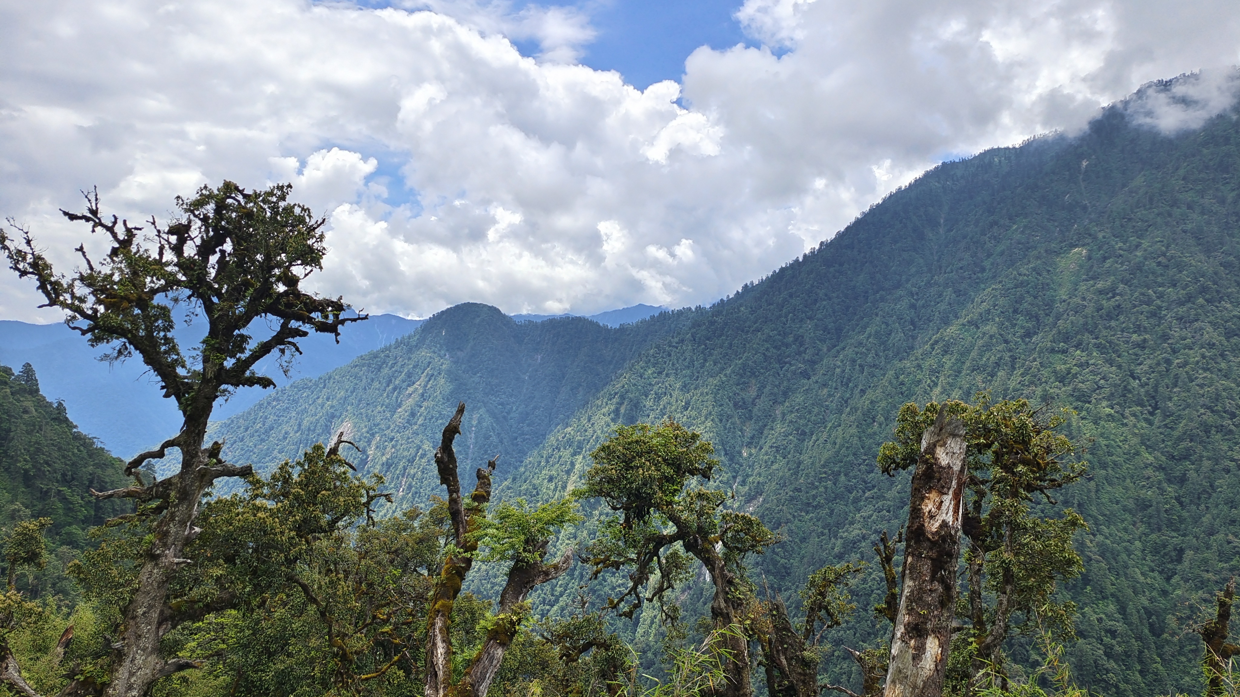 掃視貢山,三面環(huán)山,一面臨水,山有多高,水就有多高,人便住多高。“貢山,一個來了就不想走,走了就不想來的地方?!边@便是我們茶余飯后的閑聊,八百里的通途旅程,上千元的往返車費,坐實了“進山”這一說辭。來到貢山,讓人驚心動魄,也讓人樂在其中,橫桿在路中的臂大青蛇、驚跑于路旁的小熊貓......我們留戀在一片蔥蘢、大霧朦朧的美景中,更震懾在江水奔騰、山高谷深的大自然的偉力里。