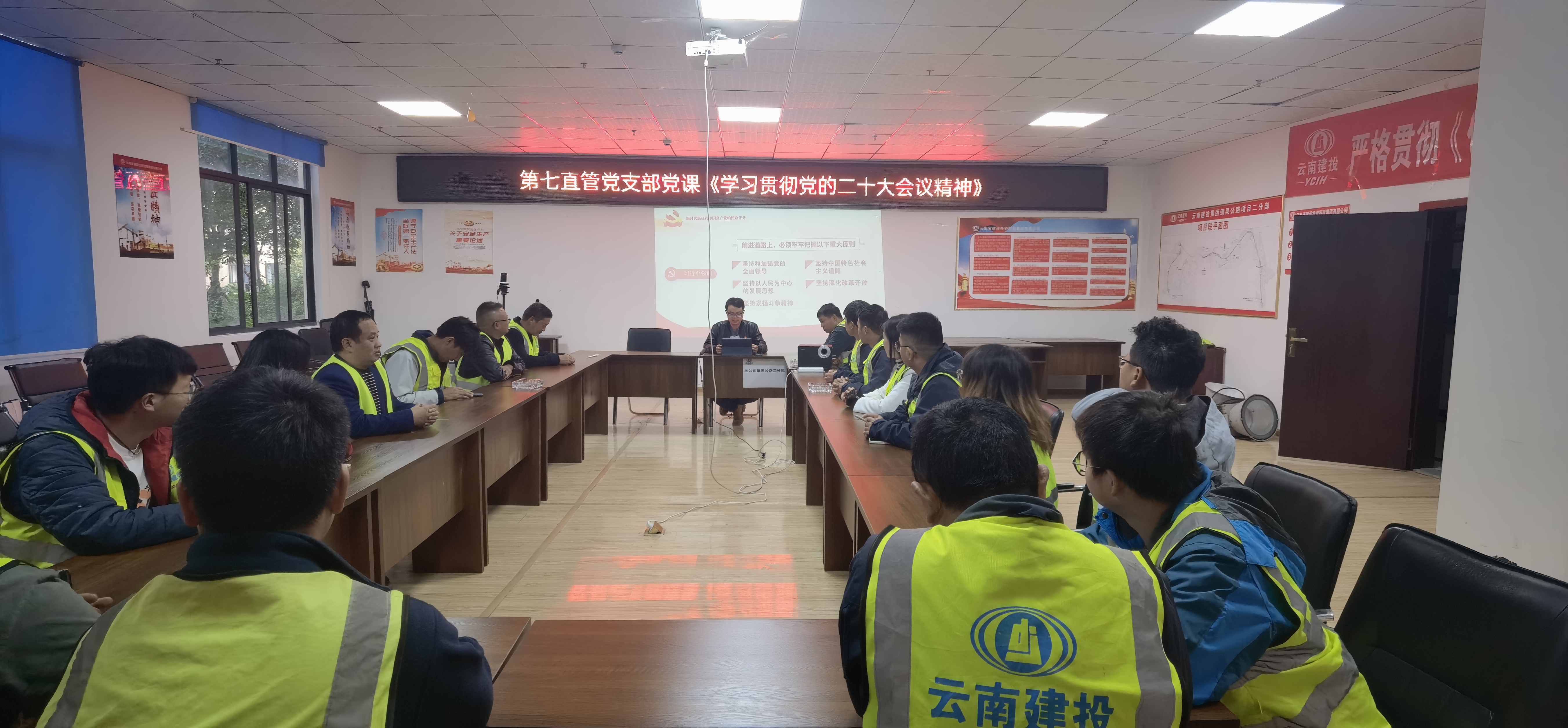 公司各黨支部結合專題宣講、主題黨日、第一議題學習制度,將黨的二十大會議精神學習融入工作日常。公司召開黨建工作會議,將黨的二十大會議精神作為第一議題,各黨支部書記、黨務干事先學一步,明確學習方向,認領學習宣貫任務。各黨支部快速行動,支部委員精心準備,走進職工群眾中宣講二十大會議精神,引導一線職工把思想和行動統一到黨的二十大會議精神上來。同時,各黨支部創新形式,開展“重走長征路,厚植愛國情懷”紅色教育主題活動、“二十大報告知識點快問快答”活動,將二十大會議精神傳達至一線職工、農民工群眾中。