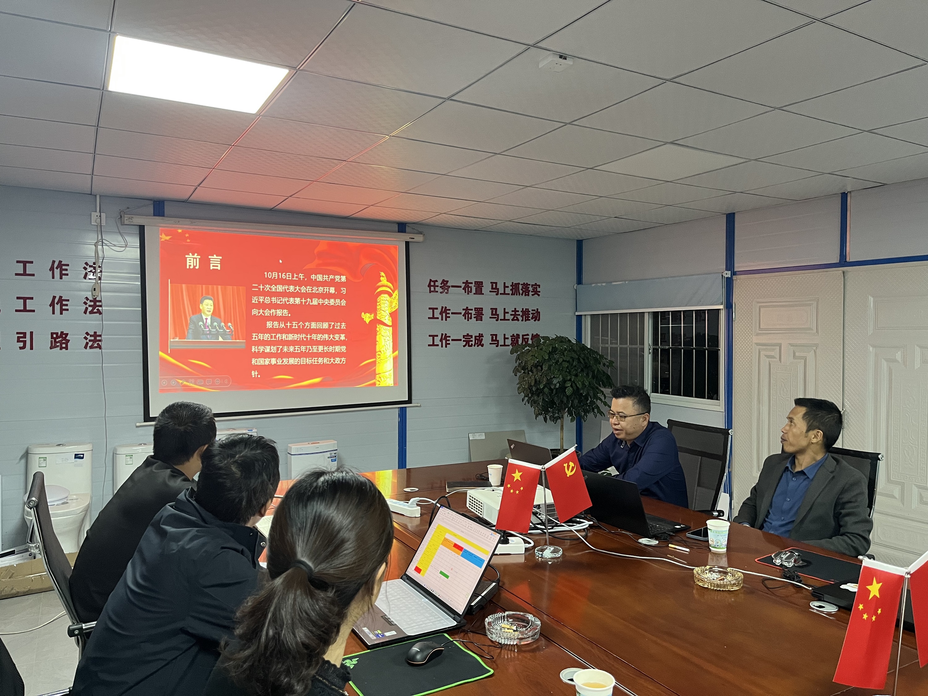 會(huì)上,黨支部書記圍繞黨的二十大主題、取得的成果、過去五年的工作和新時(shí)代十年的偉大變革等方面,對(duì)黨的二十大精神進(jìn)行宣講,教育引導(dǎo)廣大黨員干部職工不忘初心使命,以更加堅(jiān)定的理想信念、崇高的使命追求、扎實(shí)的政治作風(fēng)在本職崗位上履職盡責(zé)、擔(dān)當(dāng)作為,為項(xiàng)目生產(chǎn)提供更加堅(jiān)強(qiáng)有力的保障。