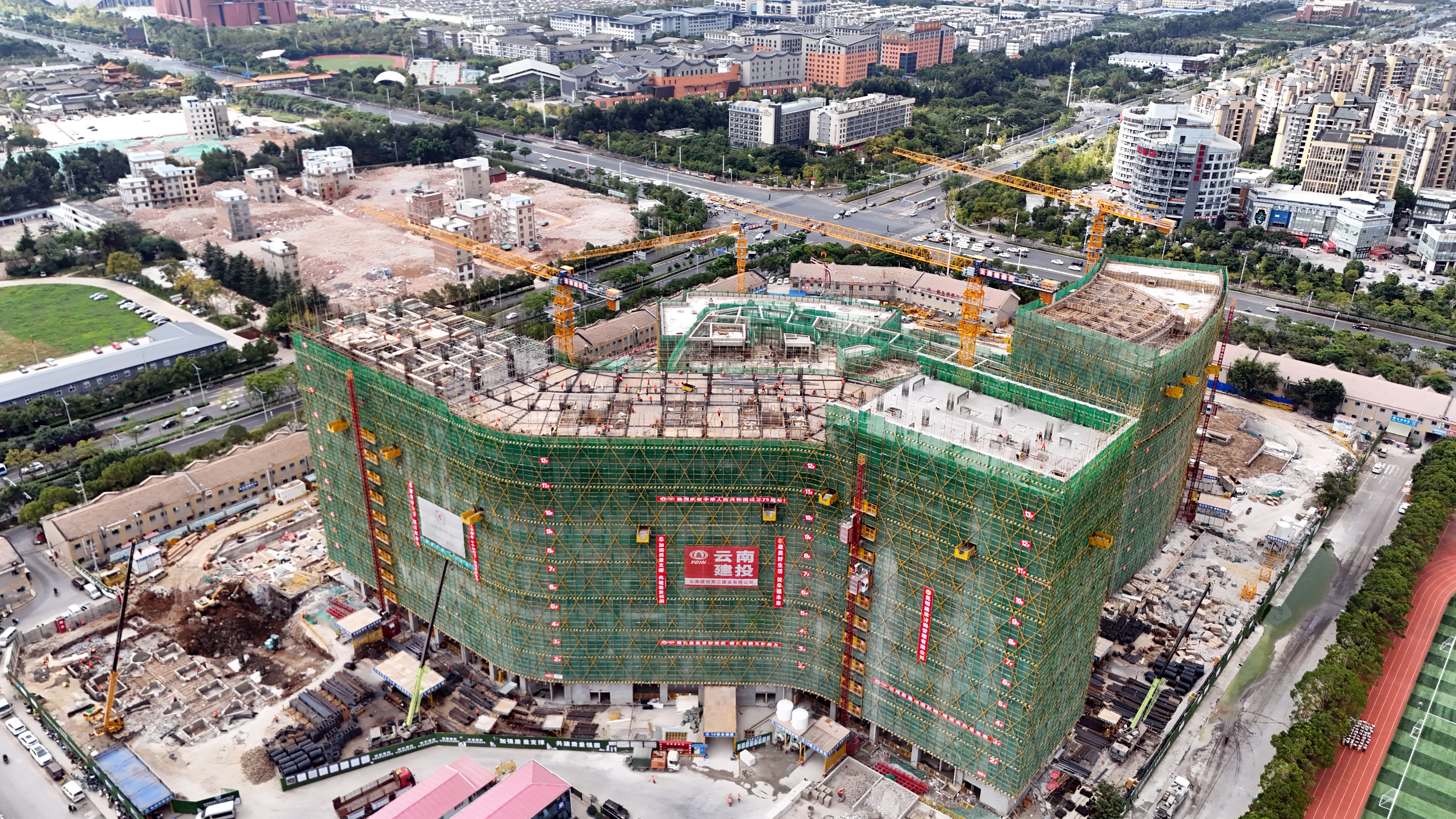 據悉,該項目位于昆明市官渡區廣福路與珥季路交匯處西北側,總建筑面積17.6萬平方米,正進行主體框架結構及二次結構施工。