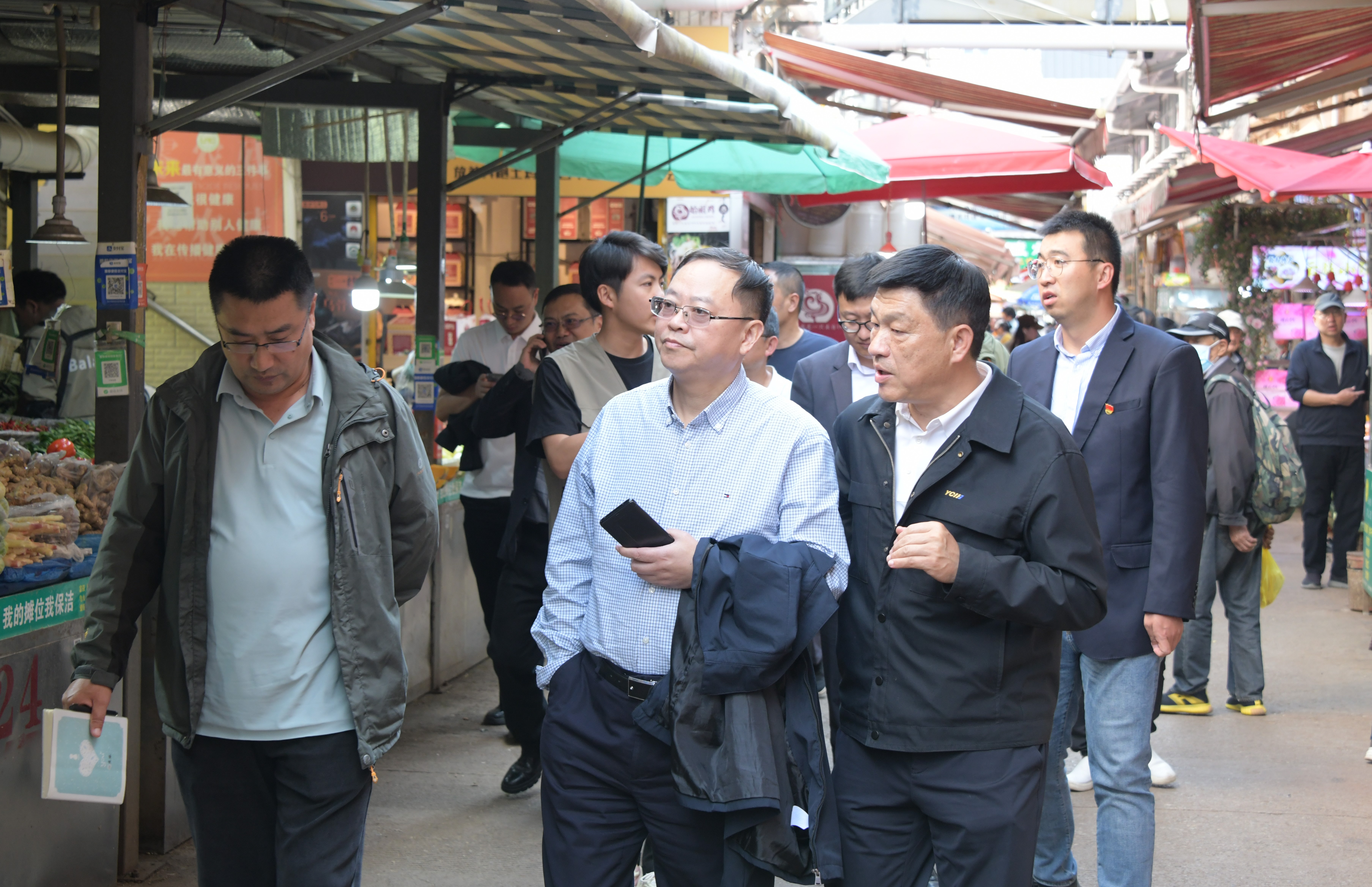 會后,一行人參觀了公司大觀篆新農(nóng)貿(mào)市場,對農(nóng)貿(mào)市場運(yùn)營管理、融資產(chǎn)品、智慧市場等業(yè)務(wù)進(jìn)行了深入探討。