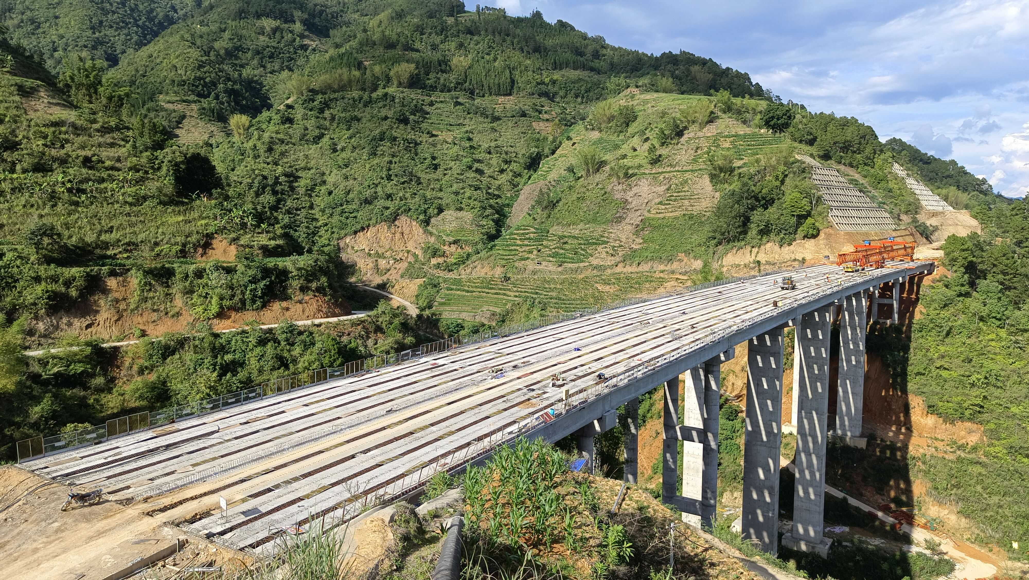 近日,由第四直管項目部承建的元陽至綠春高速公路建設項目土建工程第十一分部西拉東2號大橋T梁順利架設完成。