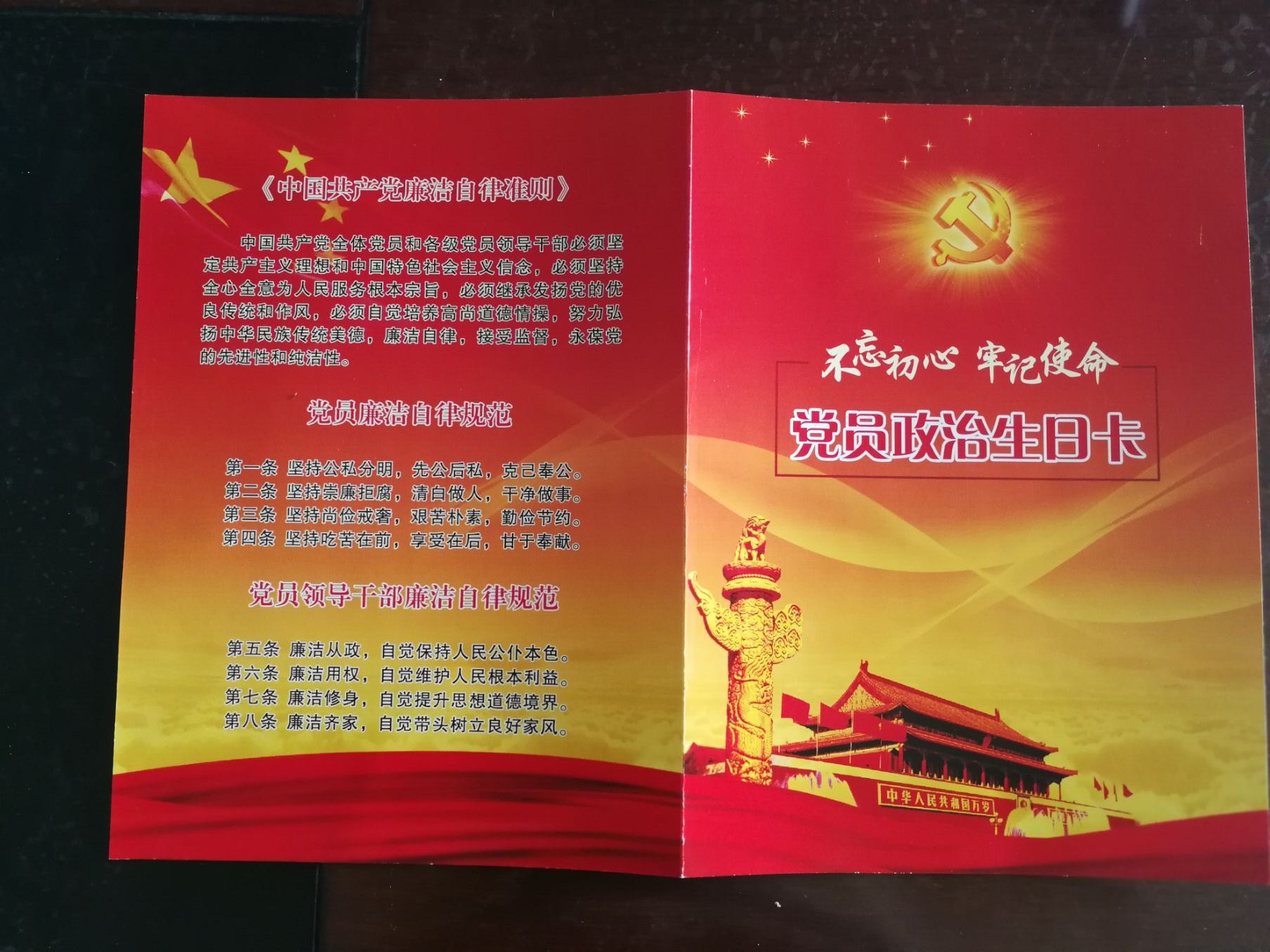 近日,路橋市政直管部副經(jīng)理陳鍵收到了一張?zhí)貏e的生日卡,這張卡的封面印著“黨員政治生日卡”幾個大字,封底是《中國共產(chǎn)黨廉潔自律準則》。打開卡,里面有入黨誓詞,并記錄了黨員的入黨日期和對黨員的寄語。今后,路橋市政直管部黨支部會在黨支部每名黨員入黨日向黨員發(fā)出“黨員政治生日卡”,讓黨員不僅擁有黨員“身份證”,還有黨員“資格證...