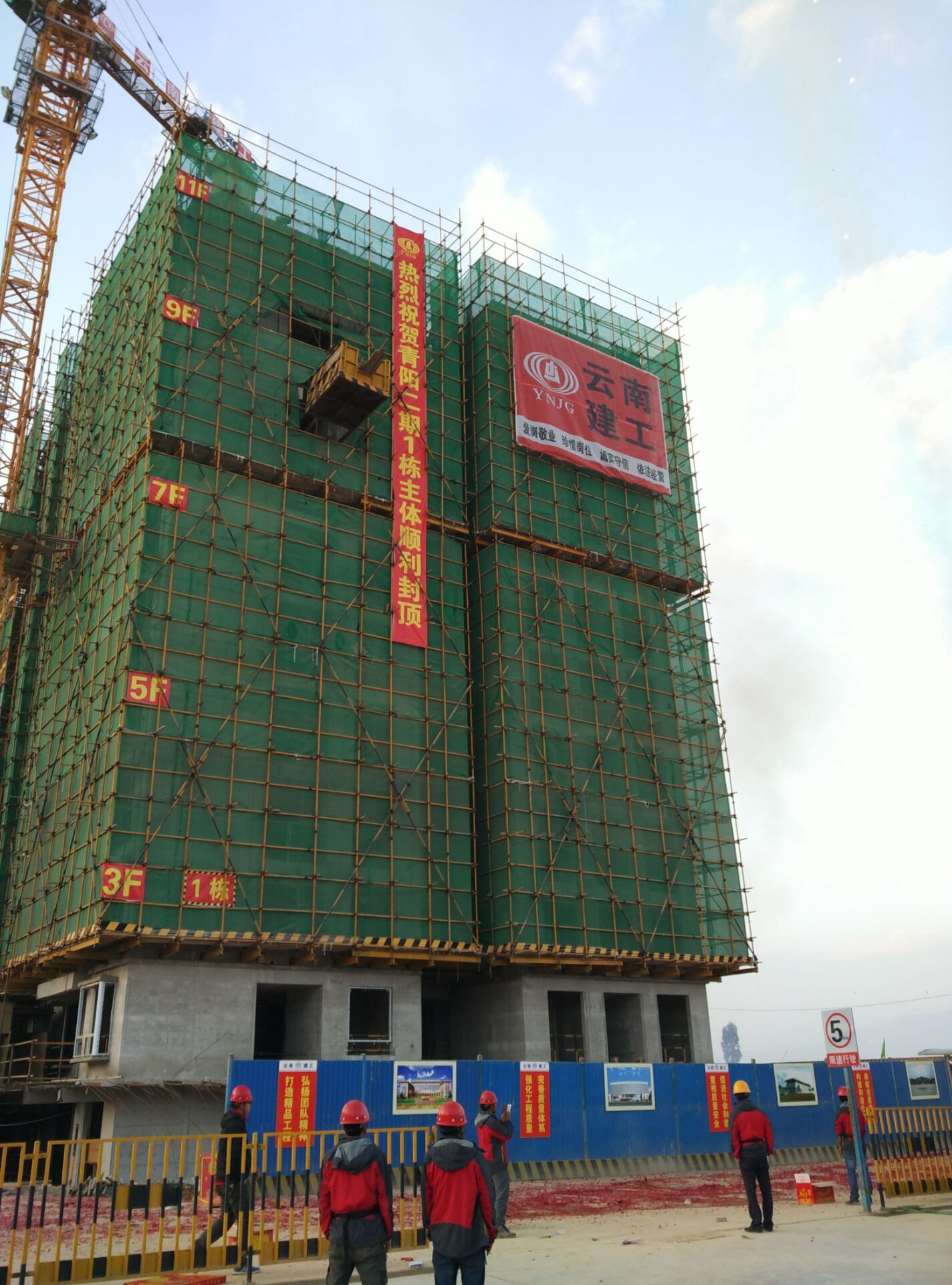 第二項目部保山青陽片區青陽二期工程首棟主體結構封頂