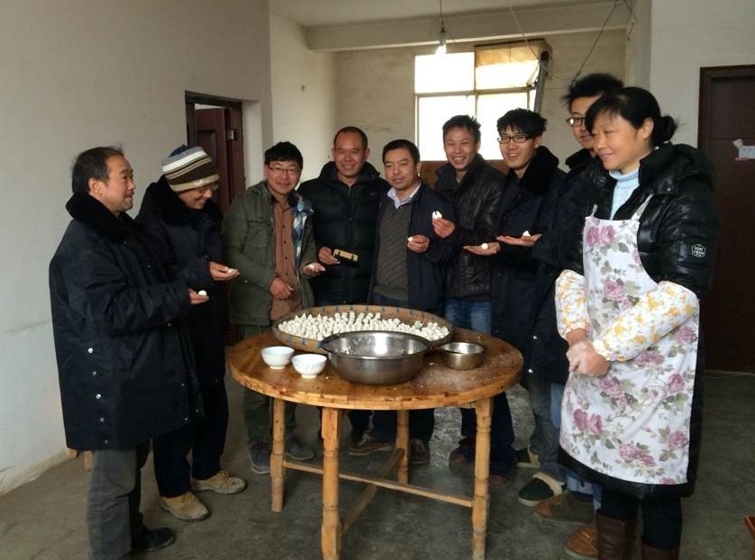 ???2月14日上午,第八直管項目部經理侯勇冒著大雪,步行兩公里來到鎮雄保障房項目帶領鎮雄項目部全體管理人員在項目食堂一起親自動手和面,包湯圓。湯圓造型各異:有傳統的圓型湯圓,富有鎮雄特色的三角湯圓,還有大家各自發揮想象力包出來的湯圓。一個小小的湯圓,載著濃濃的凝聚力,營造了鎮雄項目部的陣陣歡聲笑語。湯圓包好之后,八直...