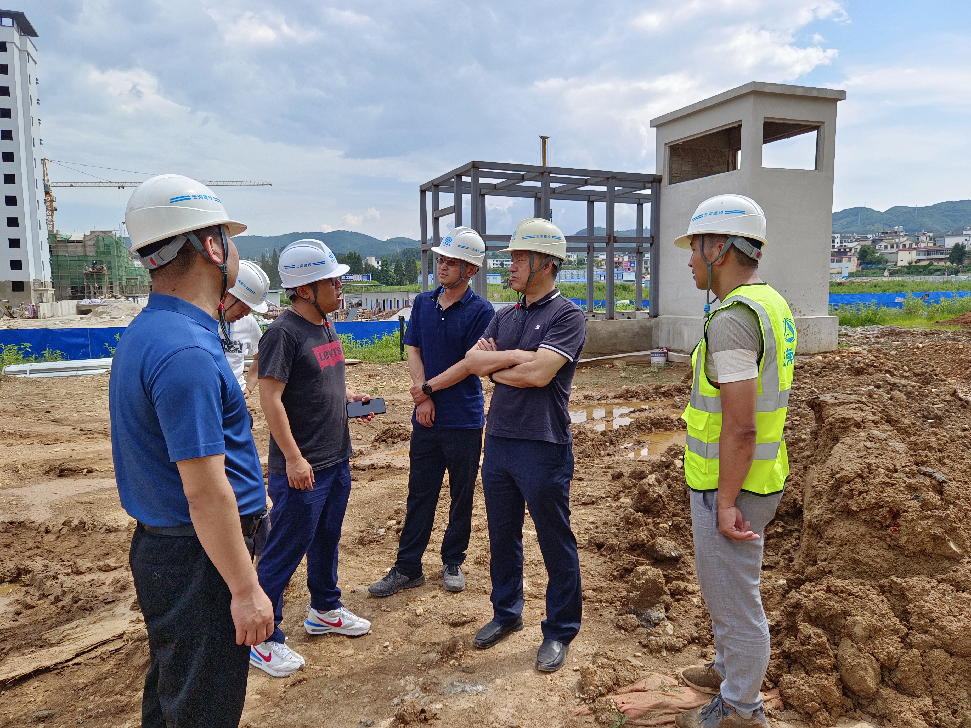 7月10日下午,公司黨委委員、副總經理(主持經理層工作)李騫到第八直管項目部承建的晉寧區騰洋光學標準化廠房新建項目檢查指導。李騫深入項目施工一線,在詳細了解了項目進度、安全、質量等情況后,與直管部班子及項目部管理人員進行交流座談,李騫結合項目推進情況指出:一是保障高溫作業安全,要科學合理安排一線施工人員作息時間,強化安...
