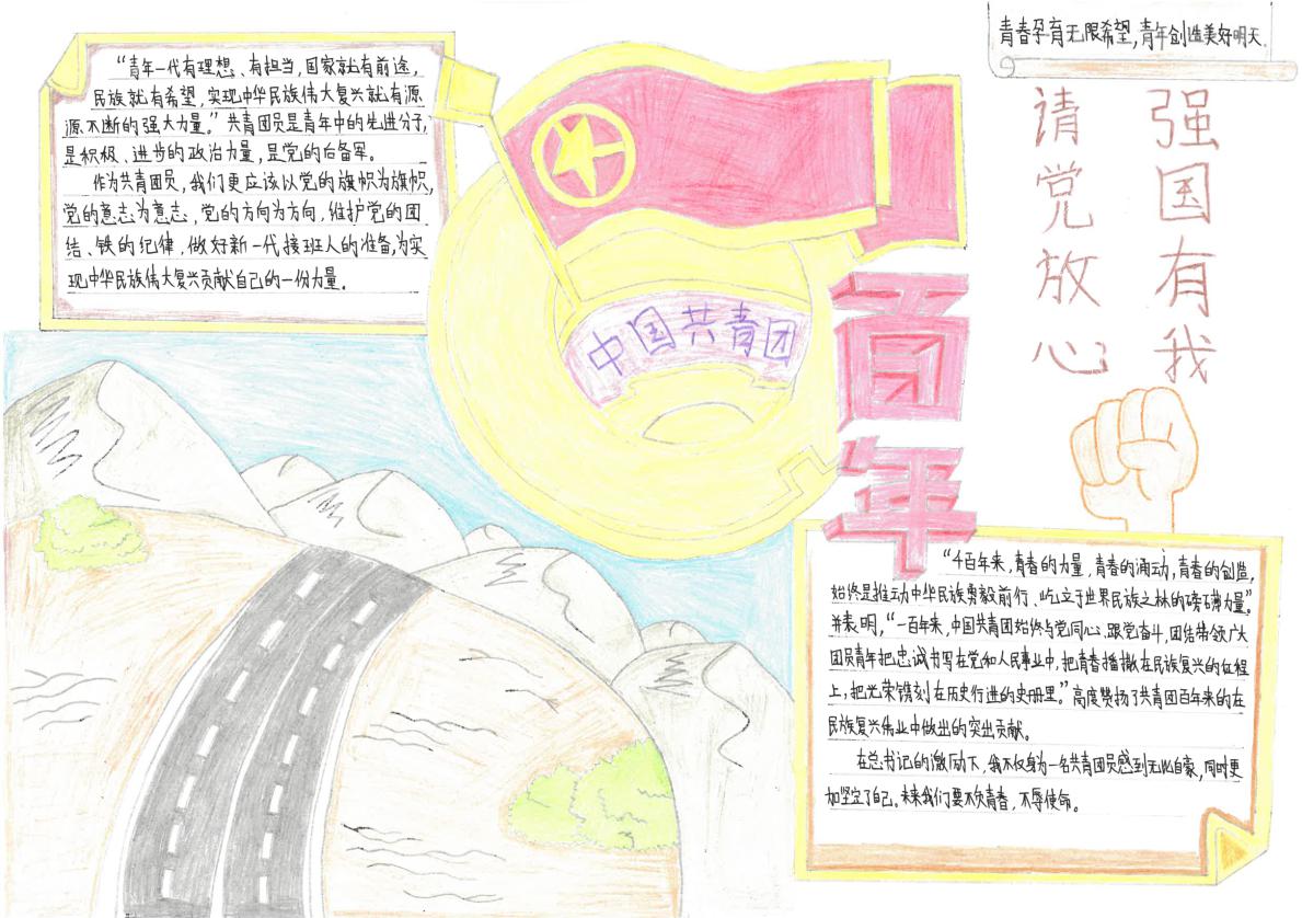 創(chuàng)作學(xué)習(xí)作品。在階段學(xué)習(xí)后,各團(tuán)支部組織團(tuán)員青年結(jié)合自身學(xué)習(xí),積極創(chuàng)作學(xué)習(xí)手抄報、繪畫、貼紙等作品,以豐富多彩的“小文創(chuàng)”讓學(xué)習(xí)成果生動起來。